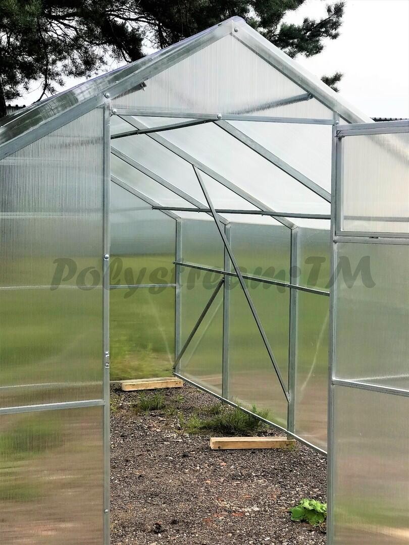 - Большой объем внутреннего пространства: Высокая двускатная крыша и прямые стенки дают возможность эффективно использовать пространство, выращивая большое количество саженцев одновременно.